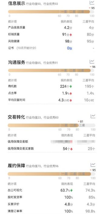 根据其经营店铺的经验,买家在选择一个产品时,会更多地关注客户评价,如果直观上店铺的客户评价并不优秀,亦不会做过多的考虑,最终导致买家直接离开店铺。而商家星等级考核,则是将这些买家关注的指标展示出来,帮助买家更快地判断卖家的意愿、服务能力和经营实力。买家所关心的服务覆盖多方面,信用保障服务只是其中之一。例如,在商家星等级推出之前,平台卖家平均回复买家的询盘时间是36个小时,现在已经缩短为16个小时,海外买家的体验得到了极大的提升。