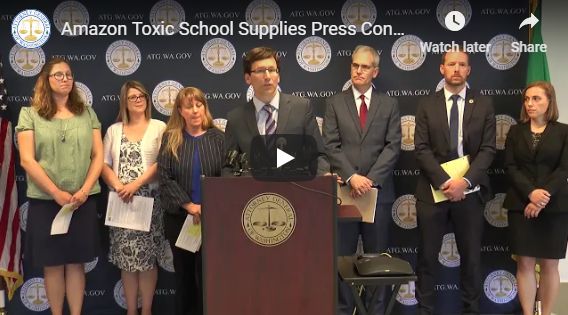 在2017年和2018年,华盛顿州总检察长办公室与生态部联合发起了一项调查合作,对儿童的学校用品进行了铅和镉的有害水平测试,这些测试针对两个机构怀疑的可能含有有毒金属的产品。