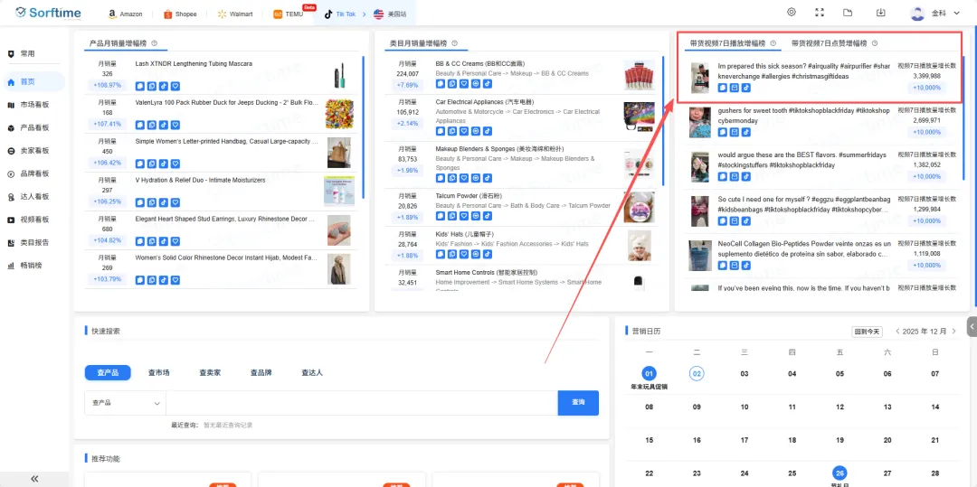 通过Sorftime TikTok 专业版的首页数据,我们捕捉到了这一异常信号。这不仅仅是一次成功的促销,更是一场关于“时机、内容与数据验证”的完美战役。
