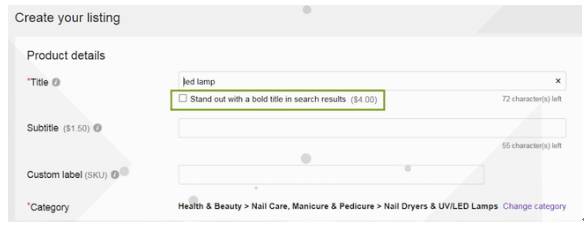 各位卖家在浏览页面的时候,经常会看到有些标题下方还有一个浅灰色的字体略小的标题,这就是副标题。添加副标题可以更容易的吸引买家的眼球,不过是收费的哦。