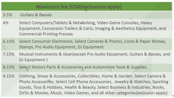 在没开店铺的情况下,绝大部分产品的成交费是收取销售总额的10%,但最高不超过750美元。