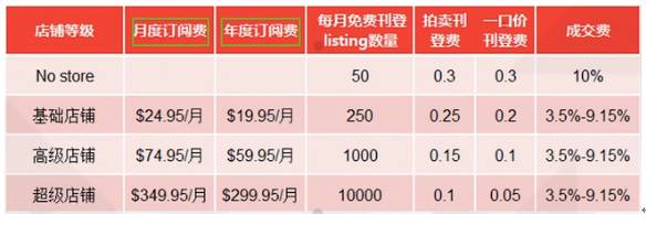 如果卖家订阅了店铺,那么刊登费和成交费会有一定程度的优惠。