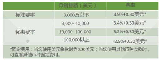 根据销售额收取一定比例的PayPal费用,具体资费表如下图所示: