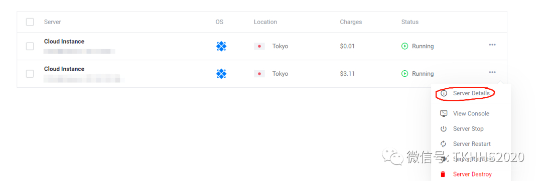 之后点右边的三个点server detail,记住IP Adress和password就ok了。