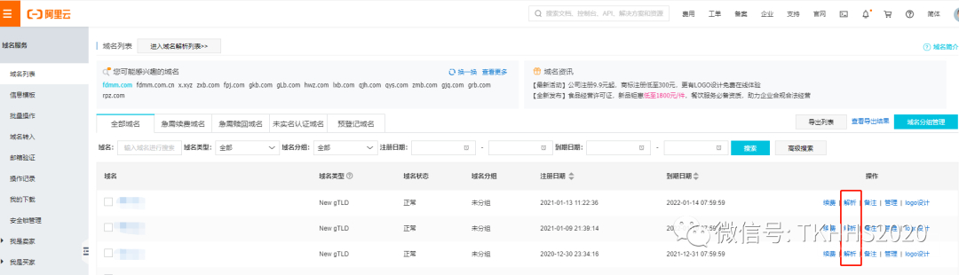 我们一般会在阿里云或者腾讯云购买域名,像阿里现在有新人优惠,第一次购买域名,像.club, .xyz之类的小众域名基本只要1块一年,很便宜。我们用的都是阿里云的。