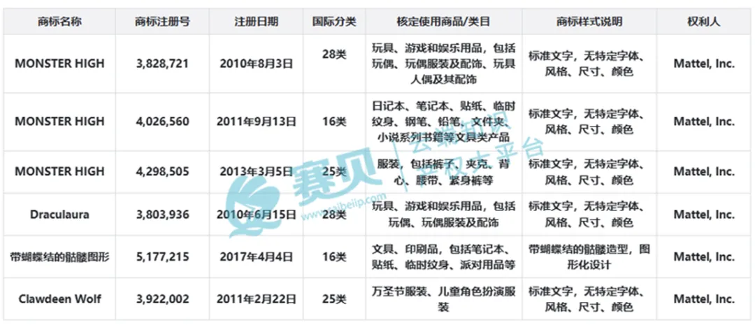 原告美泰公司作为全球玩具巨头,对旗下IP的保护极为严格,怪兽高中作为其核心IP之一,自2010年推出以来,已形成完整的IP生态,涵盖7季电视剧、15部动画电影、2部真人电影、10余款游戏及各类衍生产品,市场辨识度极高,且所有核心元素均已注册商标及版权,维权证据链完整。
