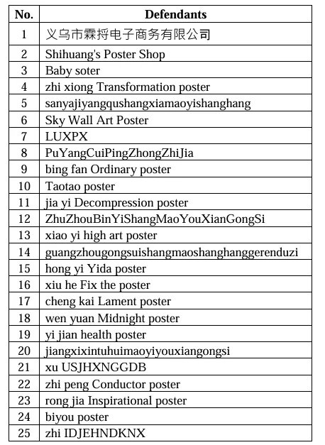 Keith对18张版权图发起TRO,被告网店有116家