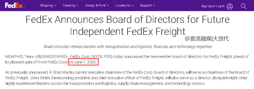 表示,目前进展顺利,分拆计划预计将于2026年6月完成,同时FedEX也宣布了分拆后,未来联邦快递货运公司(FedEx Freight)的十名董事会成员名单。