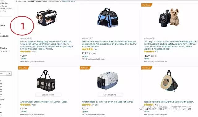 今天跟大家科普一下什么是“热销属性”,怎样去找一个系列产品的热销属性。 之前的文章已经跟大家强调过很多次了,对于很多在类目排名靠前的产品,都是有供应链优势和成本优势--比如大批量采购的低价,比如海运头程。 爆款和BEST SELLER不是一天形成的,是一个过程,是供应链升级和对供应商议价和渠道物流费用降低同时进行的。所以,我们要做的不是去在亚马逊上架这款产品,而是去根据热销属性进行二次开发或者进行微创新。 下面我将用一个案例跟大家分享如何寻找产品的热销属性: 亚马逊搜索PET CARRIER,会出现图1的结果,