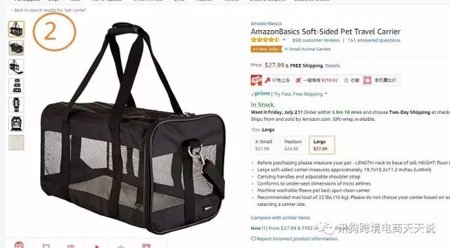 首先他们有一个特性: 1.产品有良好的透气性,图2,3的网布设计。图4的塑料壳体透气孔和开门的透气设计。 2.容量适合的是我们国内定义的“中型犬”,这点很重要。因为小型犬在美国不是主流,大型犬用手提方式比较吃力。关于为什么我们可以知道她适合的是中型犬,你仔细去看排名靠前产品的描述就知道了,描述里都有写体积负重。 所以其实这两点就是这款产品的热销属性了,你开发产品需要按照这两点思路来。 但是单就这个类目的产品来说,中小型没有过往经验的卖家不建议介入 1.帆布类手提包产品专业度较高,需要找专业工厂配合和开款,最低的要求也是帆布类手提包背包工厂配合。 2.图4的塑料包在美国已经是很成熟的供应链了,线下渠道都已经完全铺货,产品投资巨大。(模塑产品开模成本高)
