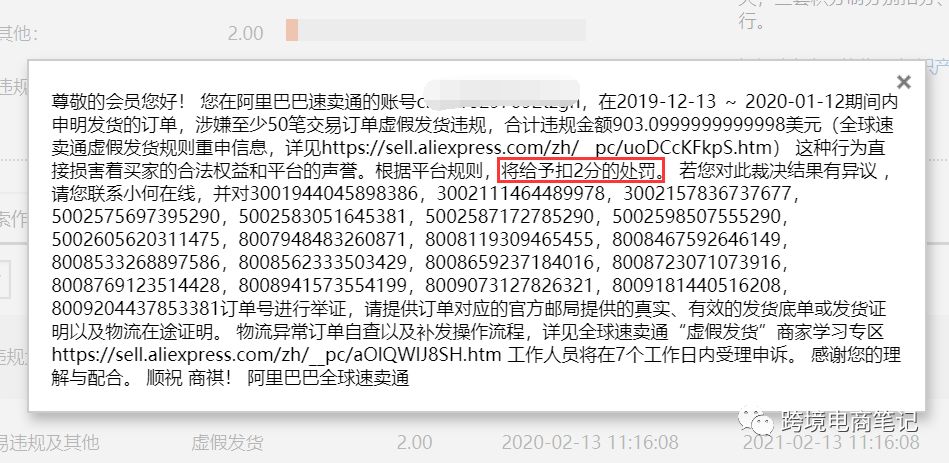 a、针对所有处罚举例订单提供官方物流证明:货物退回时间; 货物退回原因等