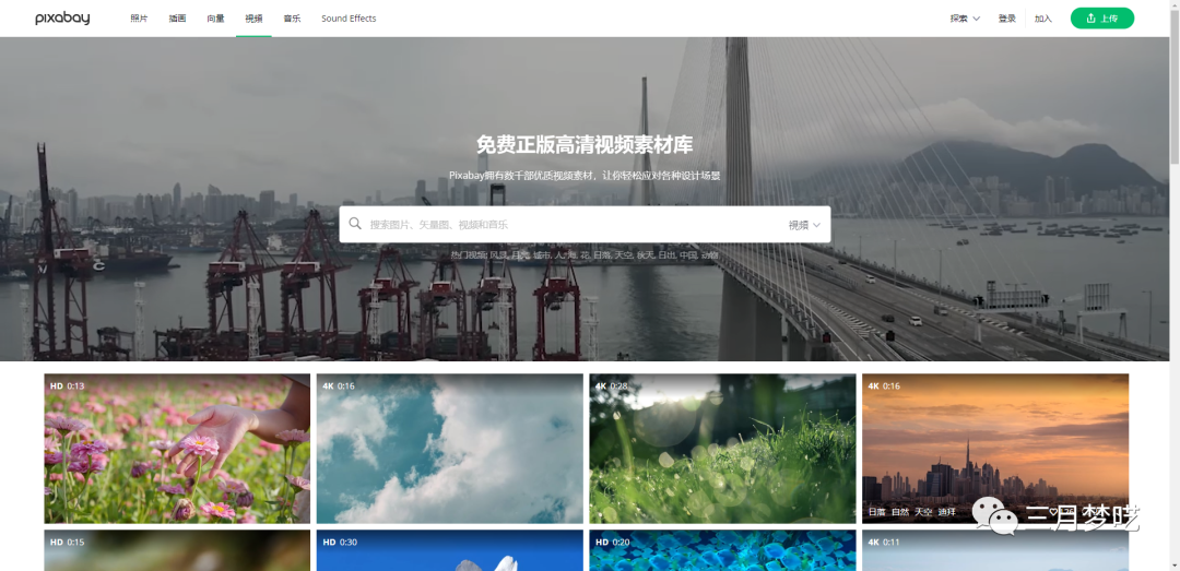 一个很出名的无版权图片下载网站,除了图片之外,还有一些高质量的图片素材网站可以免费下载商用,还支持中文搜索还挺方便的。与pixabay视频素材区别是,pexels提供的视频素材竖屏居多,而pixabay基本上都是横屏视频素材。