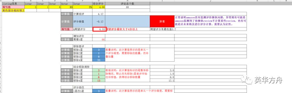 关于listing的重要性就不赘言了,下面从评分切入,先给大家分享一个分析表格:你只需要在表格中填入相应的星级和评分就可以知道自己的lisiting现在是否符合亚马逊对listing好坏的标准。(listing评分就是你亚马逊上的review数量)