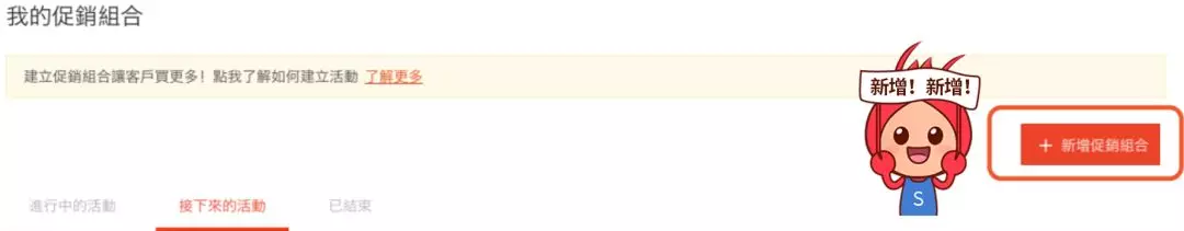 进入“我的促销组合后”后,可以新增促销组合,还可以查看并编辑已创建的促销活动。