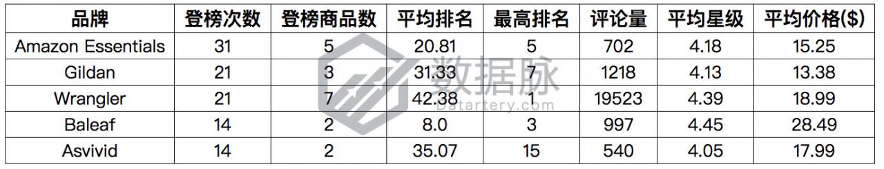 根据上周 Best Seller 榜单上各个品牌下商品的登榜次数,骆探长(shujumai.com)对登榜的品牌进行了排序, 其中排名靠前的五个品牌如下所示: