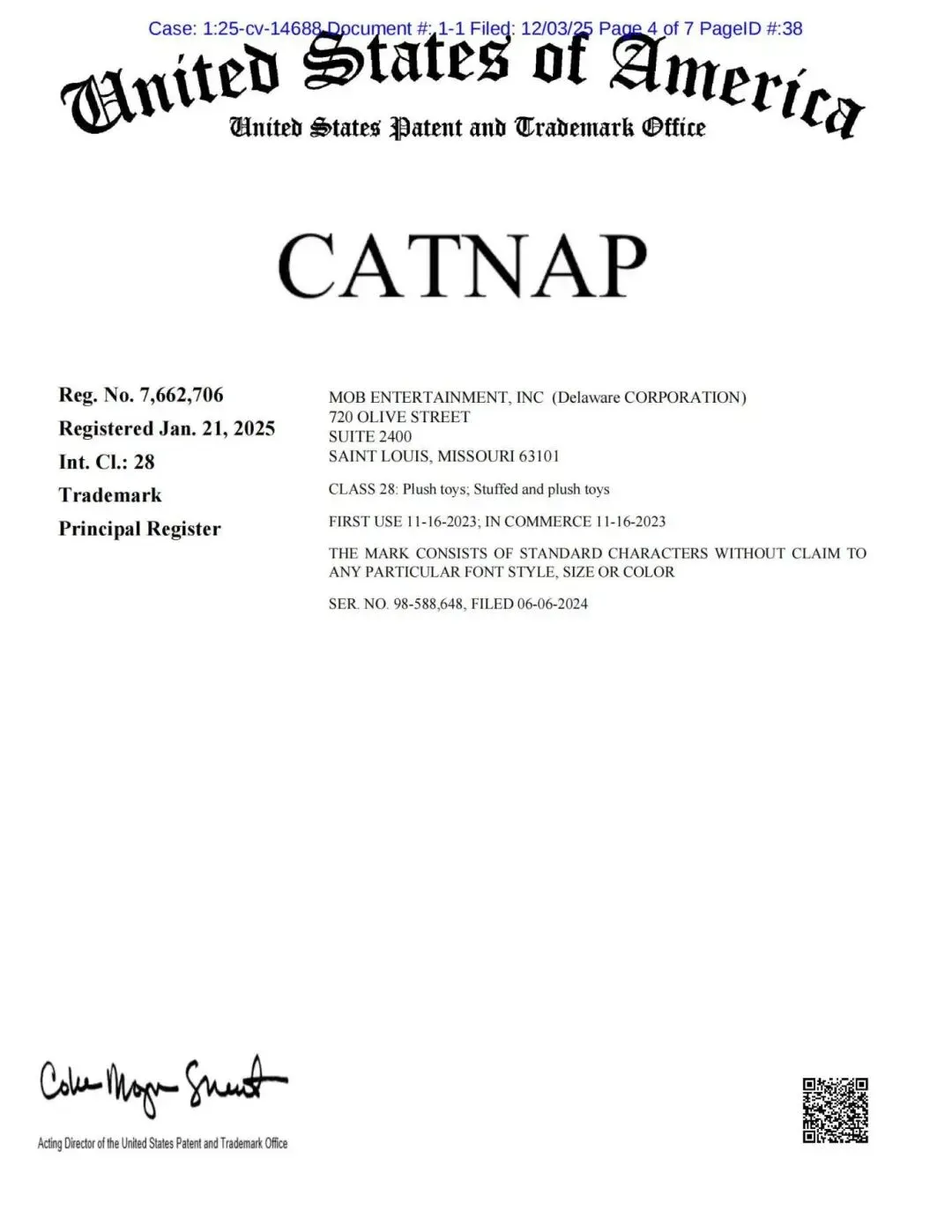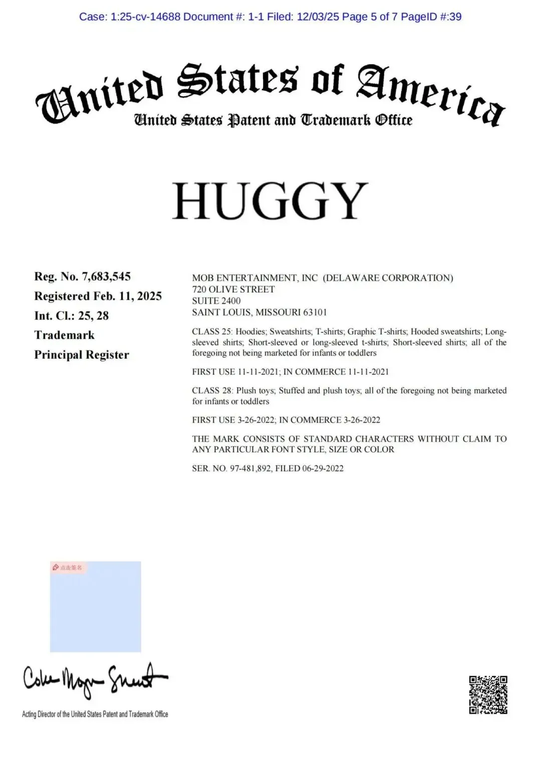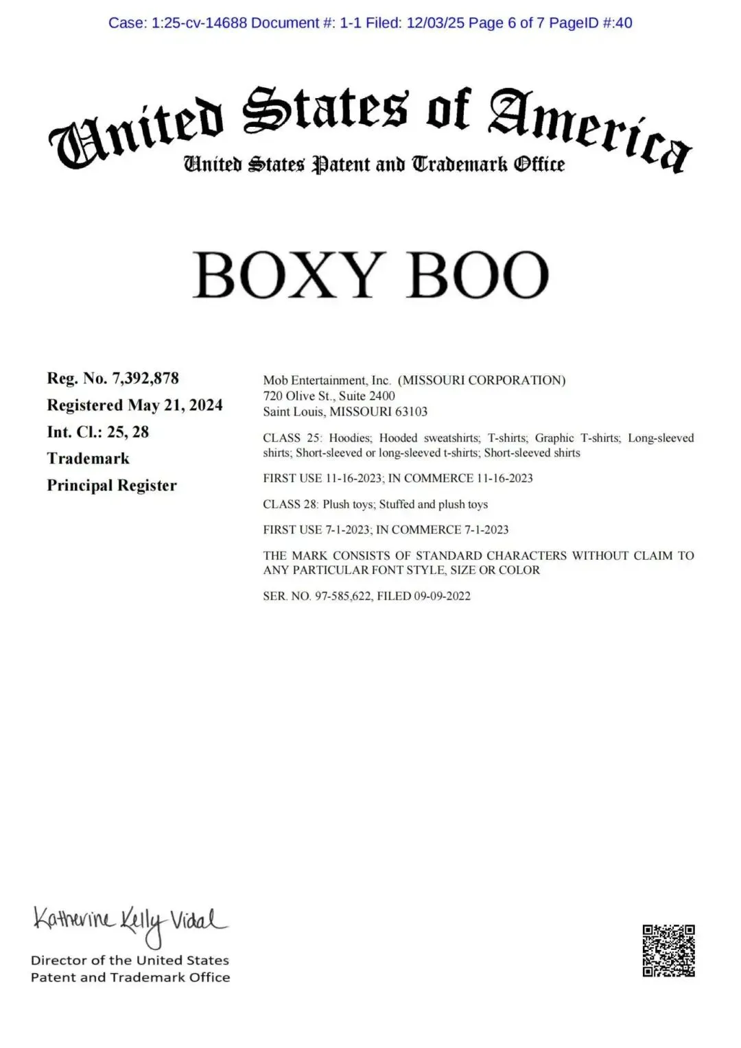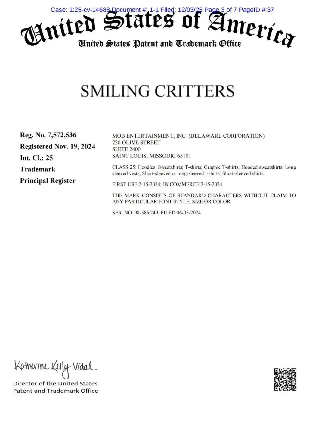 ·Mob Entertainment, Inc. (2025-cv-14688)