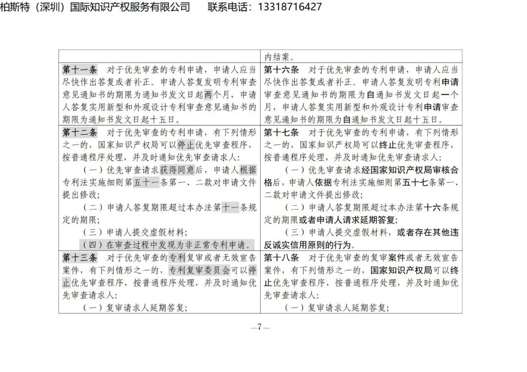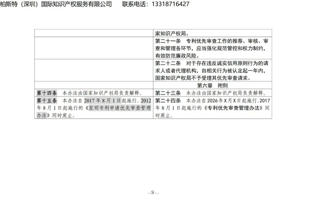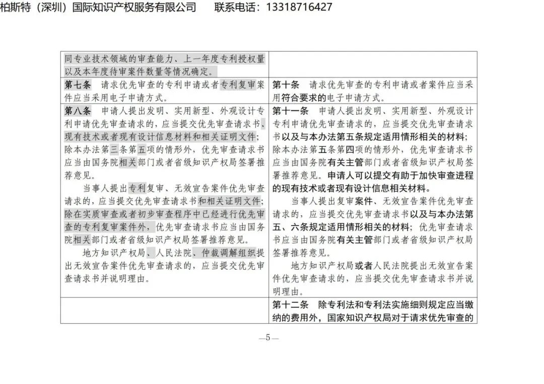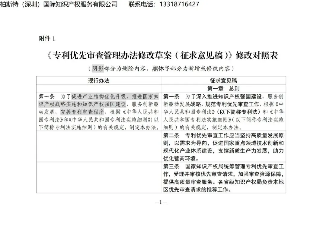 【国知局发布】《专利优先审查管理办法修改草案(征求意见稿)》修改对照表
