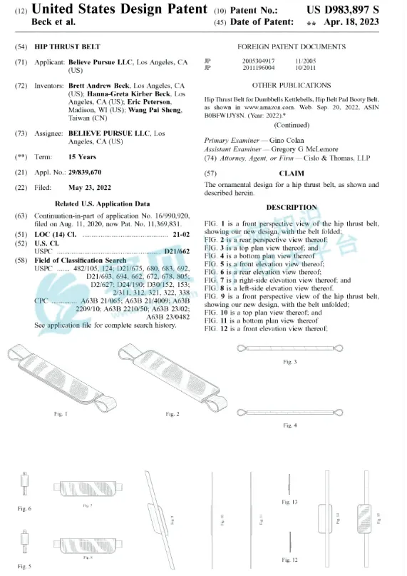 Believe Pursue LLC是一家依据美国加利福尼亚州法律成立的有限责任公司,其主要经营地位于加利福尼亚州洛杉矶市,专注于健身器材的研发、生产与营销,核心产品为“BELLABOOTY Belt”(髋部推力运动腰带)。“BELLABOOTY”品牌在健身器材领域获得了广泛认可,产品以独特的防滑设计、便携性和实用性著称,享有良好的市场声誉。