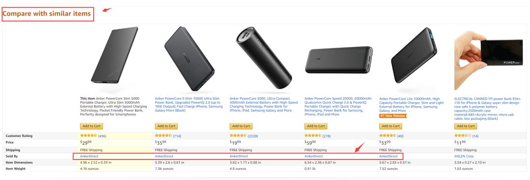 什么意思呢?就是即便是亚马逊系统推荐的产品,也全部是anker自己家的产品,选来选去都是一个品牌,无非就是产品不同而已。