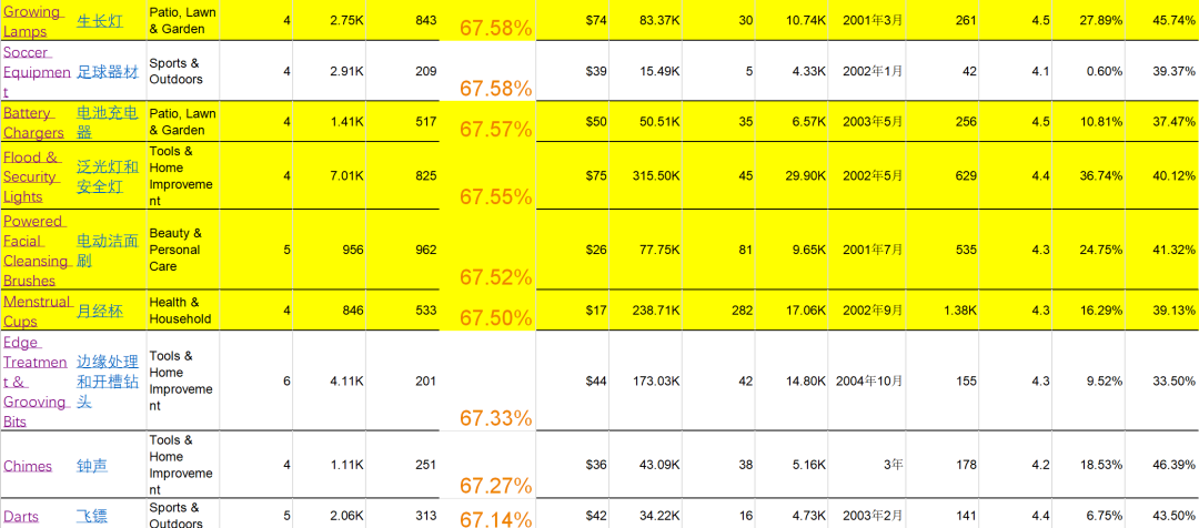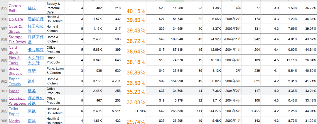 1000个亚马逊美国站大类目-潜在爆款产品分析