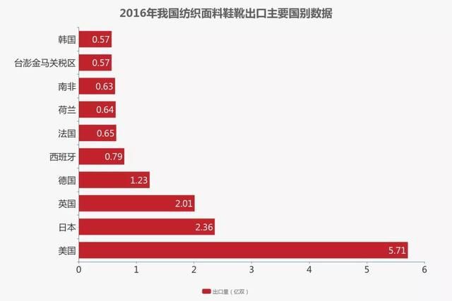 图表7:2016年中国纺织面料鞋靴出口主要国别数据