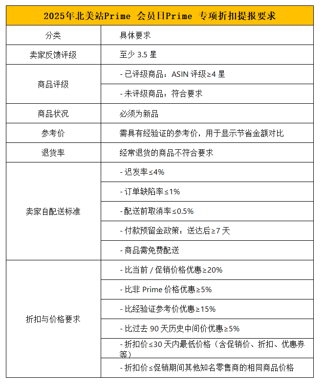 一、北美站Prime 会员日Prime 专项折扣提报要求: