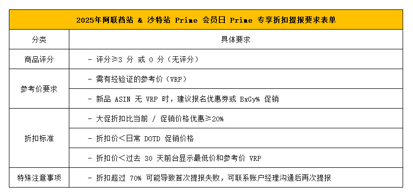 四、阿联酋站 & 沙特站 Prime 会员日 Prime 专享折扣提报要求