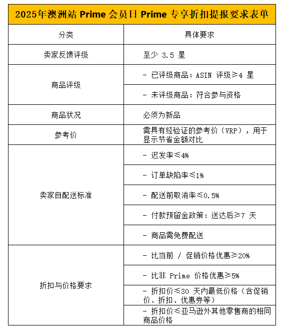 五、澳洲站Prime 会员日 Prime 专享折扣提报要求