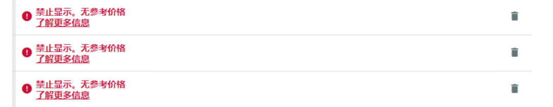 (1)禁止显示无参考价