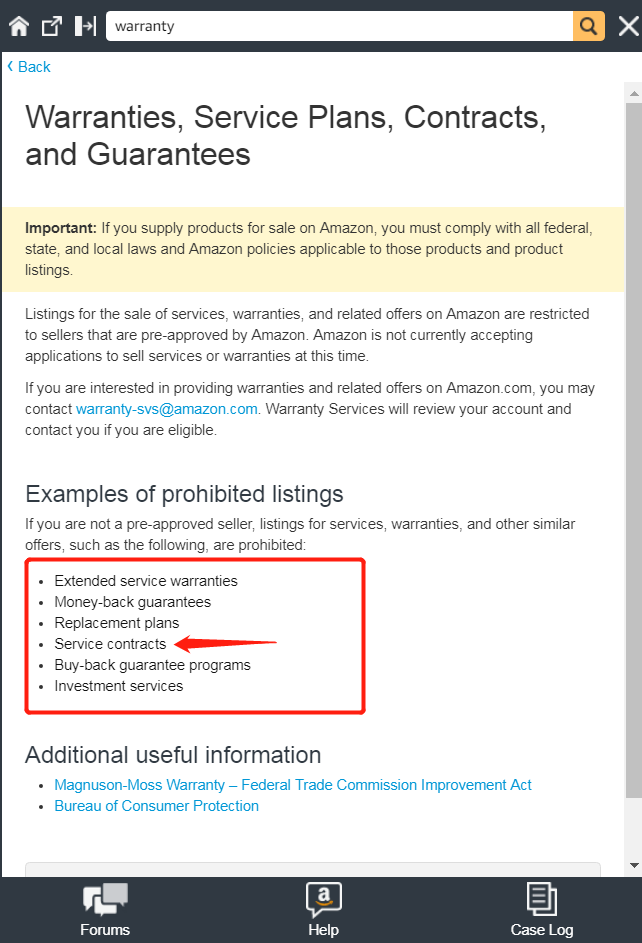 按照相应规则的规定,卖家不能未经批准的情况下,在Listing中向用户做出延长质保,退款保证,更换计划,服务合同,回购担保计划,投资服务等条款,而Warranties和Guarantees则正是系统检测识别时所抓取的核心检索词。