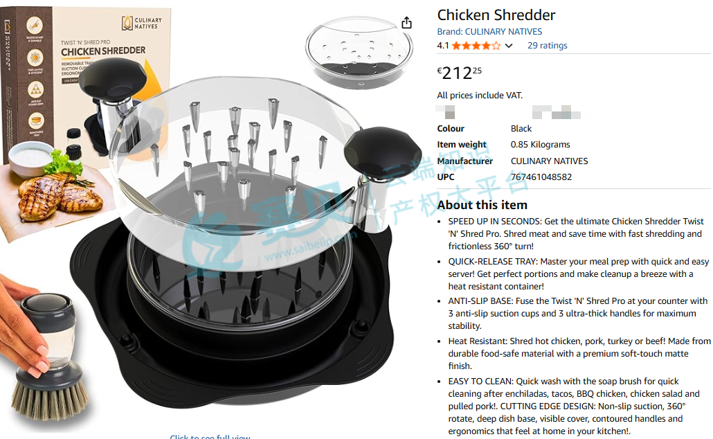 Xu'e Chen 本身是做厨房用品的,除了这次维权的绞肉机,还做冰箱储物架、多功能厨房储物用品。