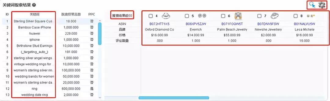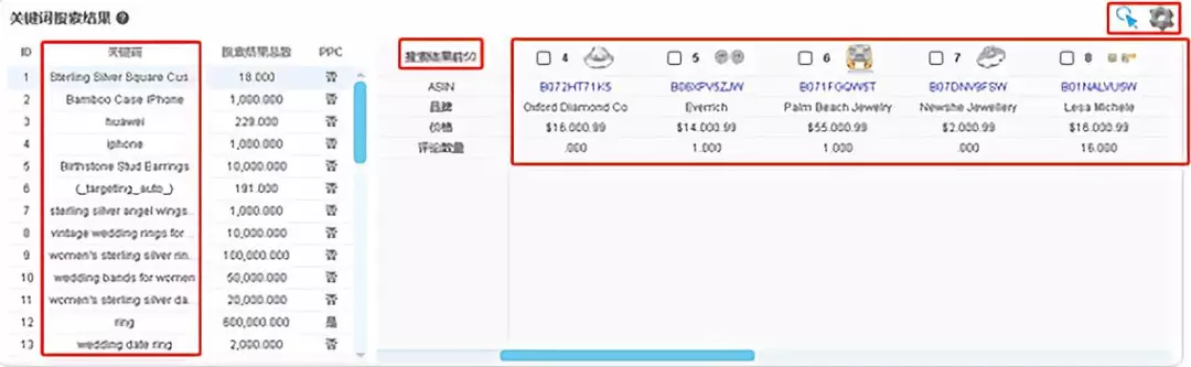 【关键词搜索结果】分析器:查看选定关键词搜索结果前50个产品。