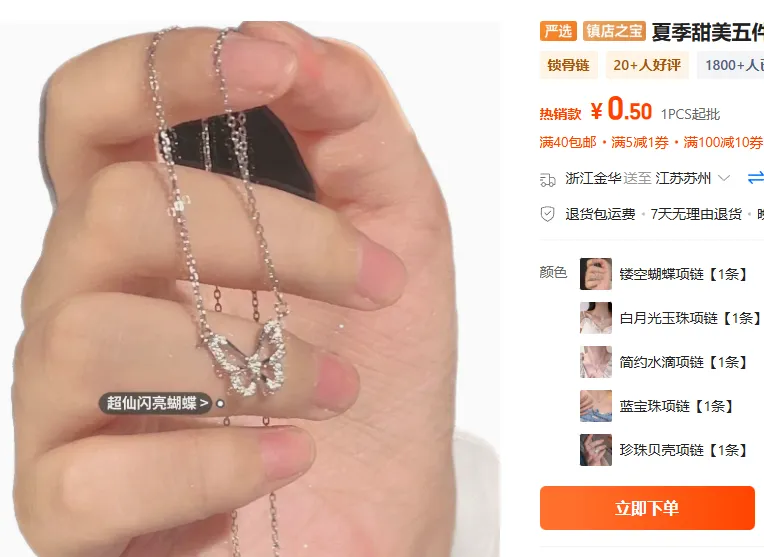比如下面的2款项链,材质基本差不多,但是价格却是“天壤之别”。