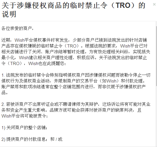 近日,又一产品牵涉侵权,已有多位Wish卖家资金被扣。侵权多发时期,卖家要格外小心。
