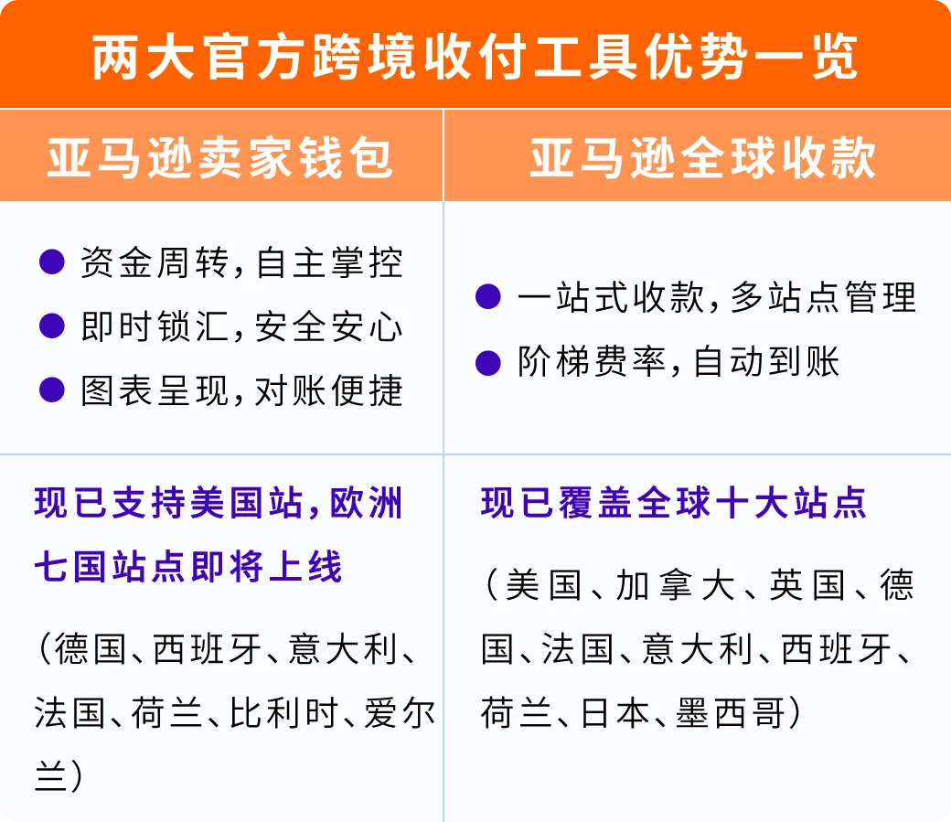 安全合规的资金保障,是卖家稳健出海的底气。亚马逊跨境收付款解决方案为卖家提供更安全、高效、可控的资金管理方式。无论您想要省心管理还是灵活收付,这两款工具都能助您为跨境业务打牢资金底盘。