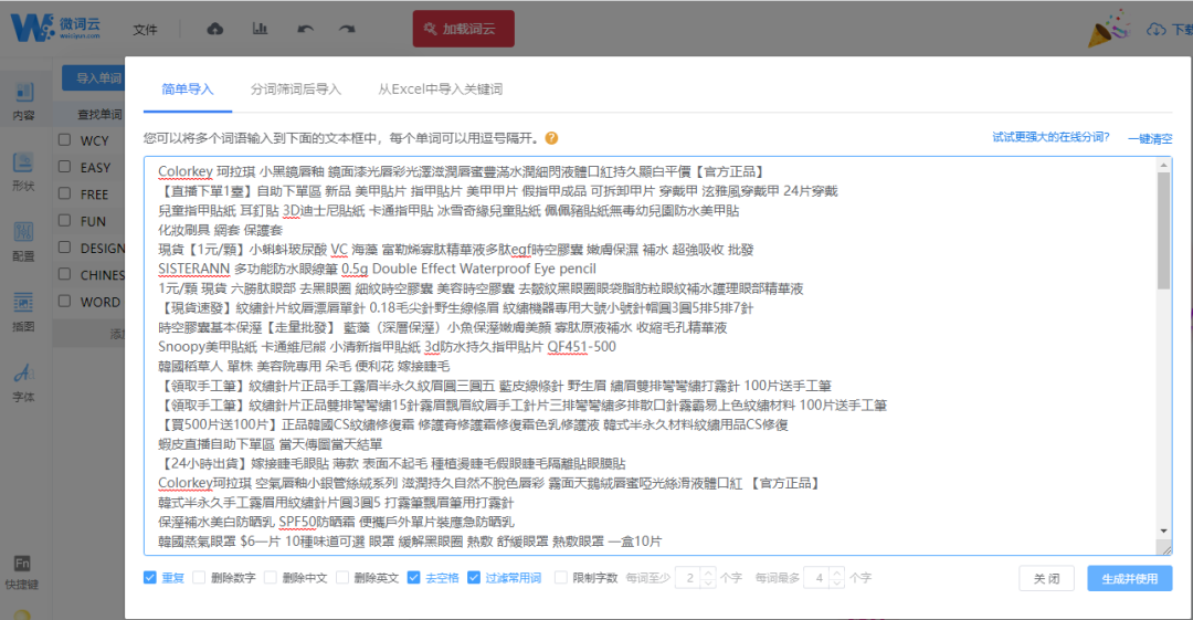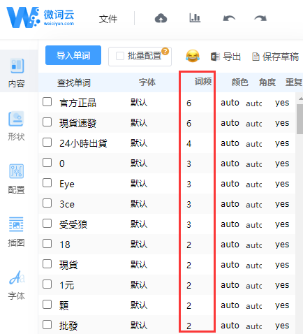 然后把所有标题导入到“微词云”,进行分词