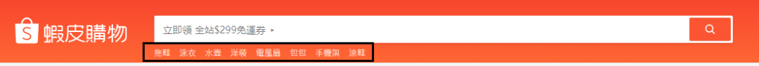 3)Shopee前台搜索框底部的最新关键字