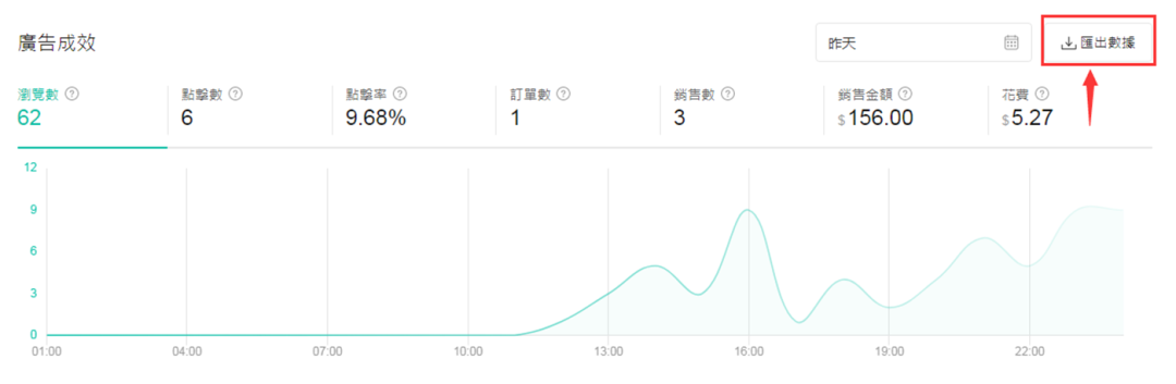 这个方法要求大家开广告测款的,测试3天后,一个产品满足50个点击,然后在广告后台把数据报表导出来,在这个地方进行导出:
