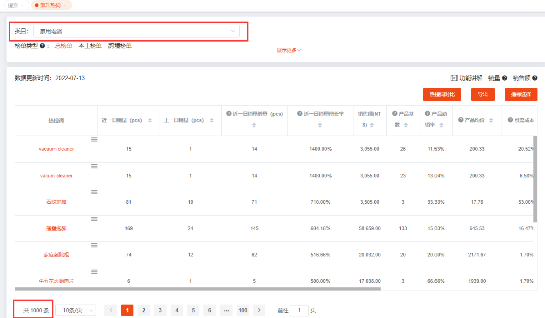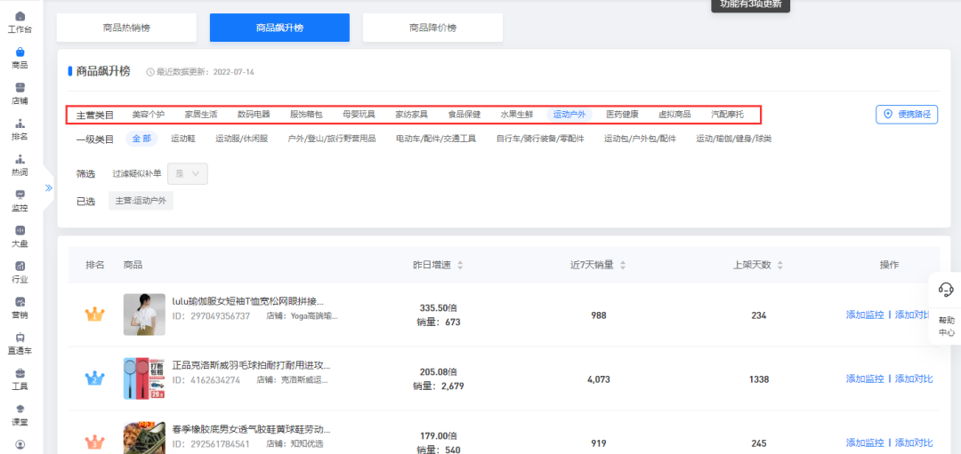 其实从拼多多上面搬运,我们只要利用好大数据分析工具就可以了。用多多情报通,可以发现,多多情报通已经帮我们把一级类目分好了。我们只要对应自己在Shopee上面经营的类目,然后在多多情报通上,找出飙升的商品,然后对应销量跟价格,就能直接采集到我们的虾皮店铺了
