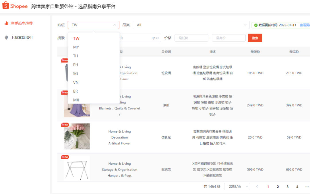 这个在虾皮卖家中心就可以找到啦,官方每周更新一次,会介绍每个站点的最热关键字,已经相应的选品推荐。