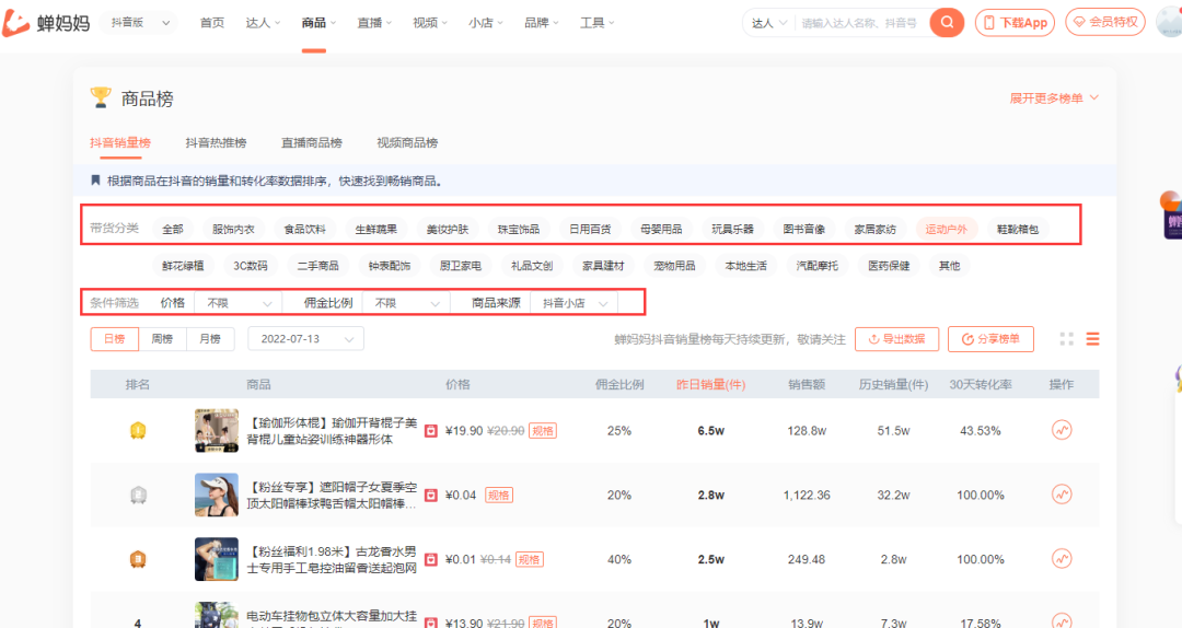 同理,从抖音搬运,只要上蝉妈妈-专门为研究抖音的数据分析工具,也能快速找到抖音热卖热销的产品。