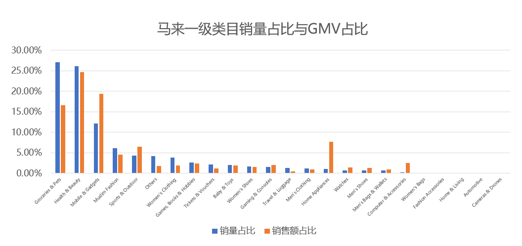 2)马来不一样,销量只有10%,但是销售额占比却有26%,出一单等于中国台湾出2单。销量不高,但是单个商品价格高。我们在文章开头也讲过,决定利润两个关键因素,一个是客单价,一个毛利率。