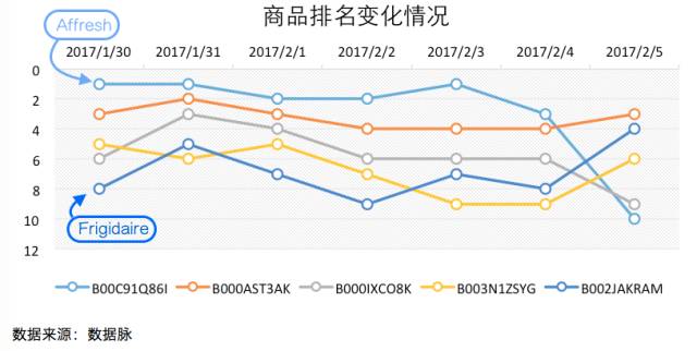 此外,在五款综合排名较高的上榜商品中,有三款为冰箱滤水器类型产品,分别来自品牌 GE、Samsung 以及 Frigidaire ,其中品牌为 Frigidaire 的冰箱滤水器产品在该周的后半段榜单排名涨势良好,并于2月5日成功跻身 Best Seller 榜单第四的位置,值得进一步关注。
