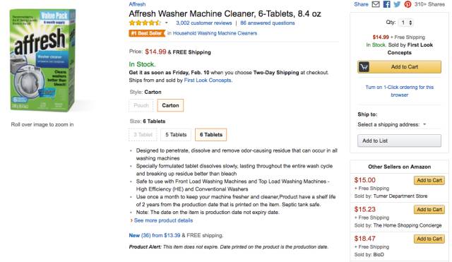 可以看到,在上周 Home Improvement 品类的 Best Seller 榜单中,一款品牌为 Affresh 的洗衣机清洁剂产品在一周内三次登顶榜首,虽于2017年2月4日至5日榜单排名有所下滑,但仍以平均排名2.88的较好成绩位列综合排名首位。