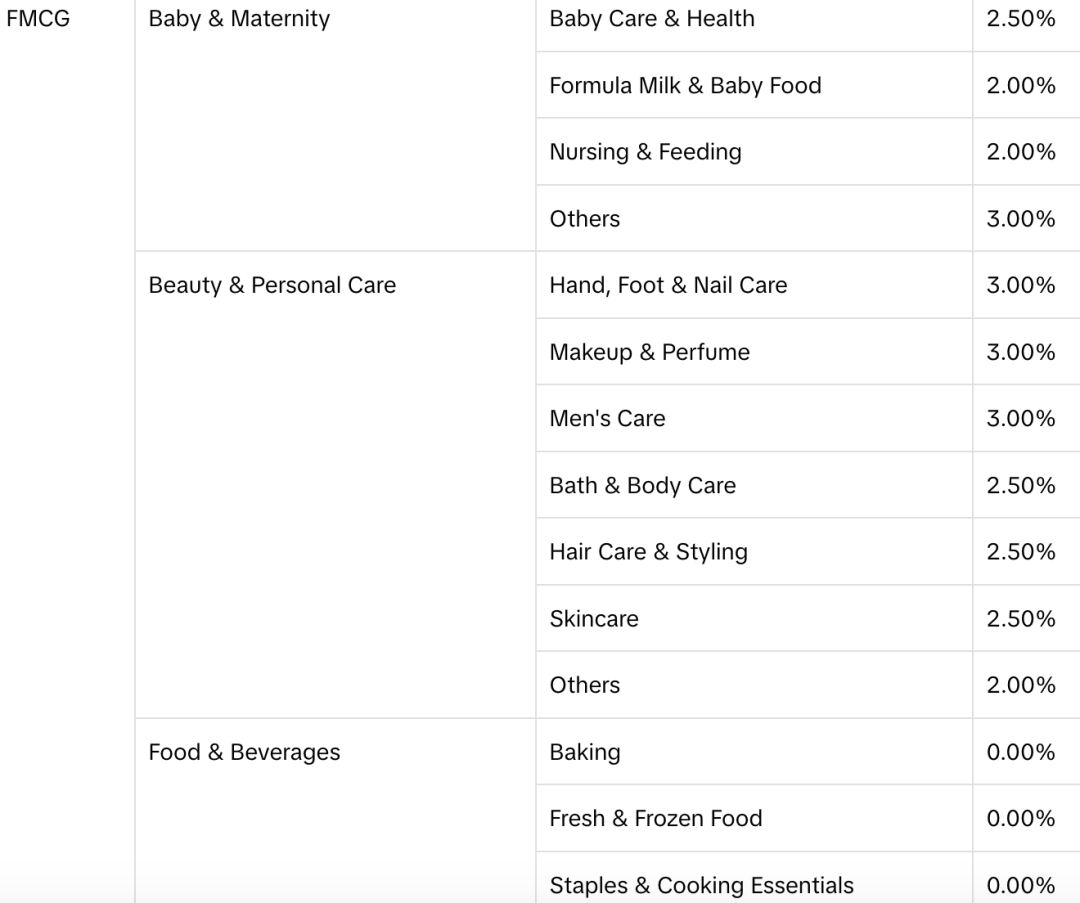 调整之后:根据不同类目进行收取,费率从 0%-3% 不等。