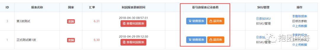 二、报表创建成功后,就会转入上传“亚马逊业绩销售报表及退货表”的页面