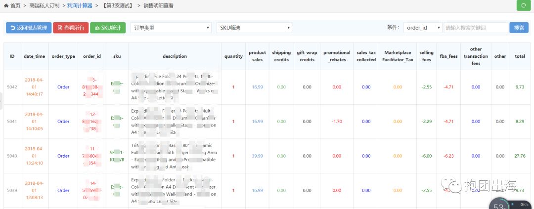 我们先看一下利润计算器的结果:(这些数据,全是亚马逊导下来的数据,直接导入平台就直接生成,后面有教程。)