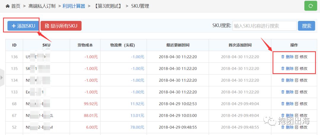 如果SKU成本有误,或者有新增,可通过SKU管理