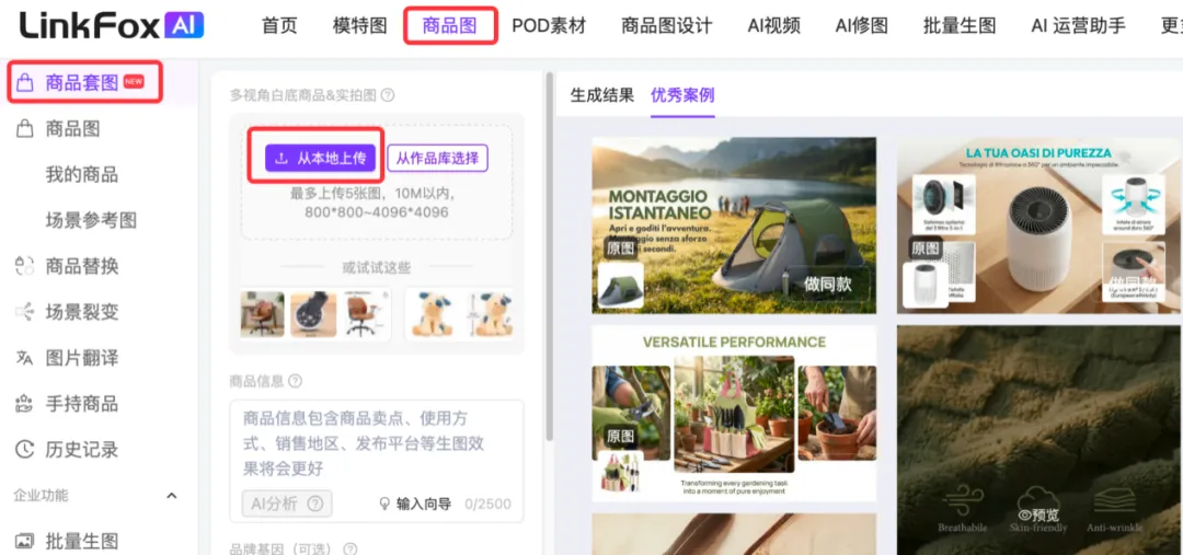 按能让AI看懂卖点的顺序上传5张图,尽量选择多个角度