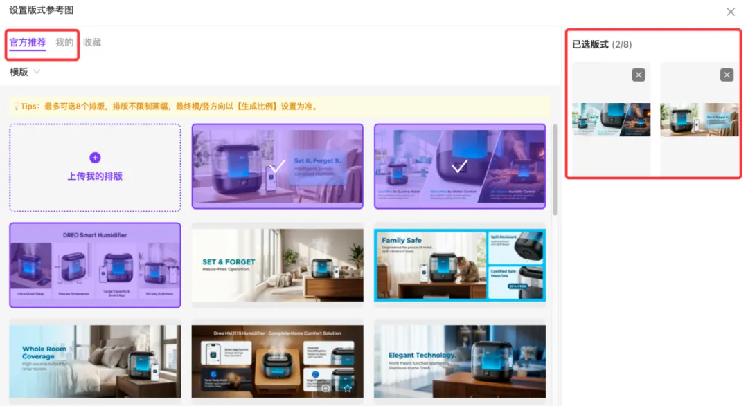 点选择排版,可以用官方推荐模板,也可以上传自己的模板;不选就随机排版